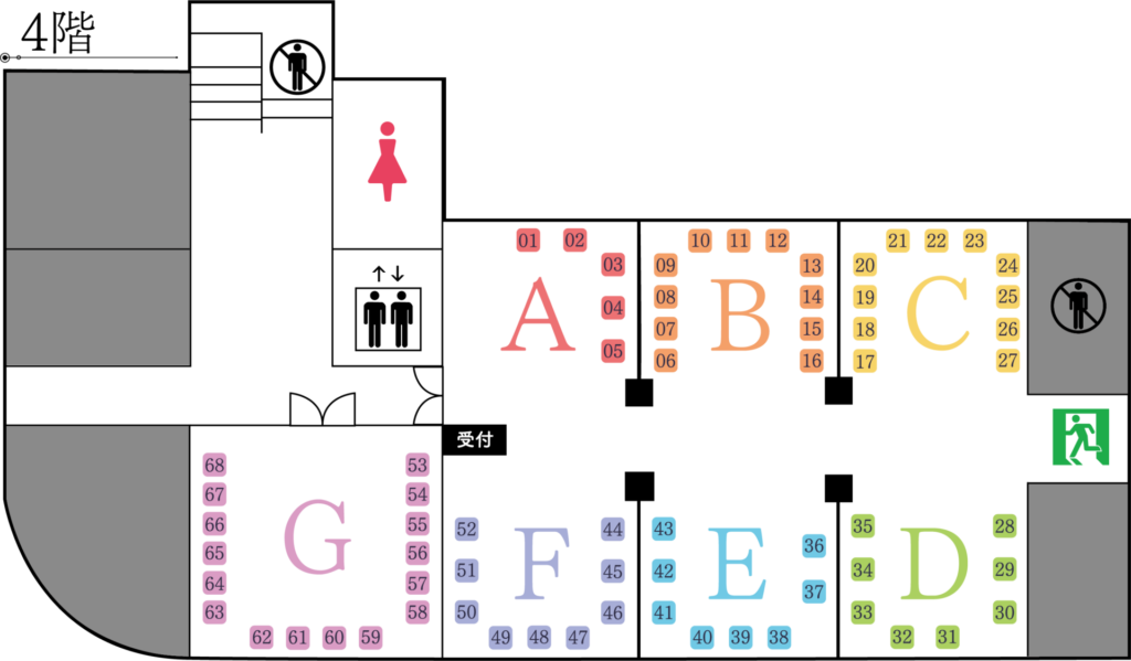 ※4階は女子トイレのみとなります。男子トイレは2階、バリアフリートイレは1階にございます。