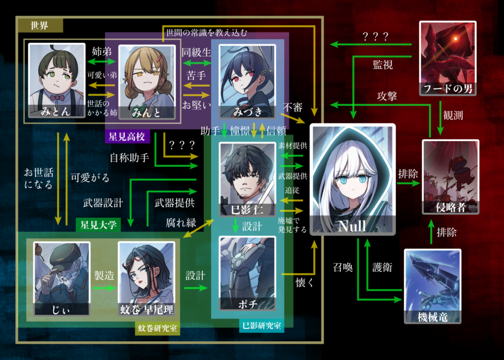 物語の主人公のひとり。学園都市にある星見大学の教授。専攻は生体理工学。Nullと出会い、裏世界が見えるようになってしまった。コーヒーが好物。