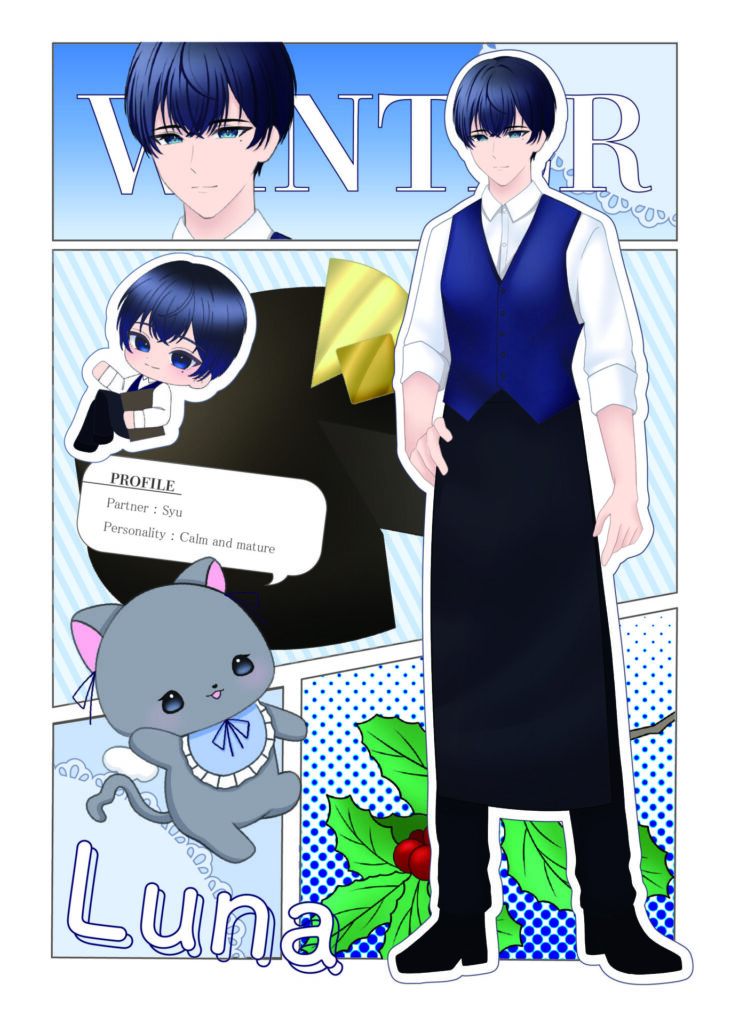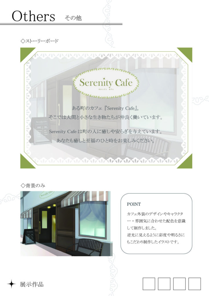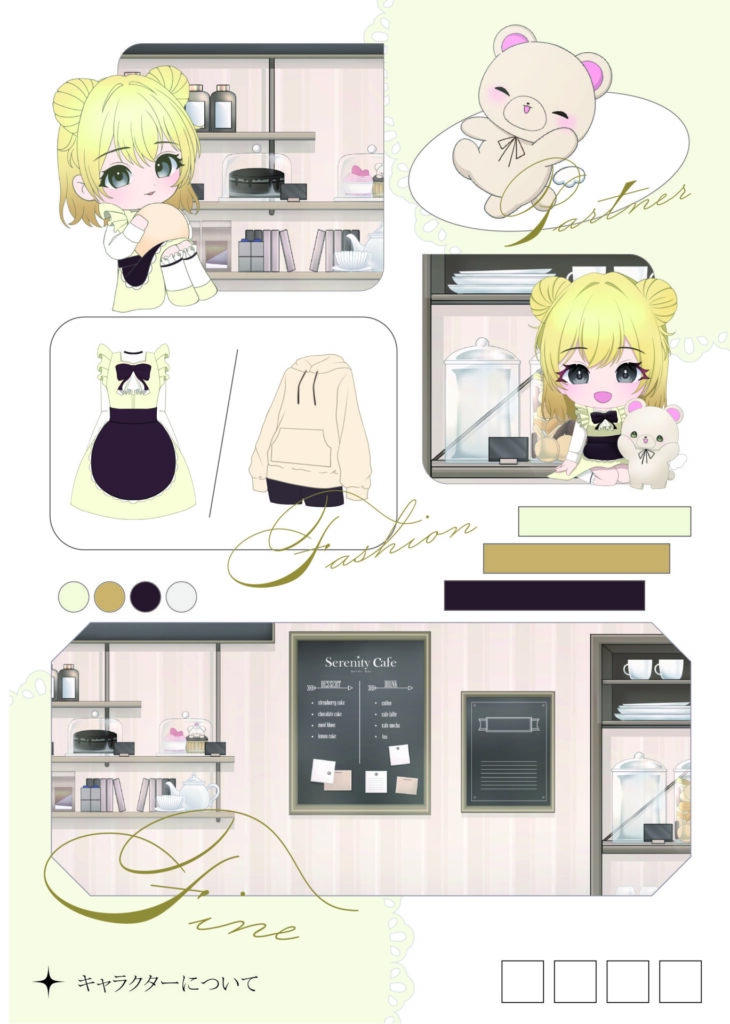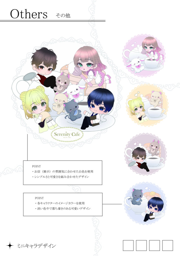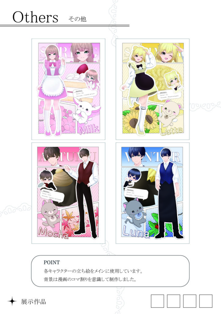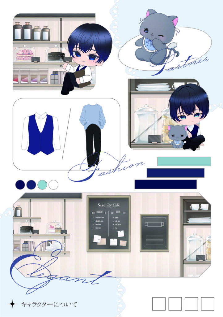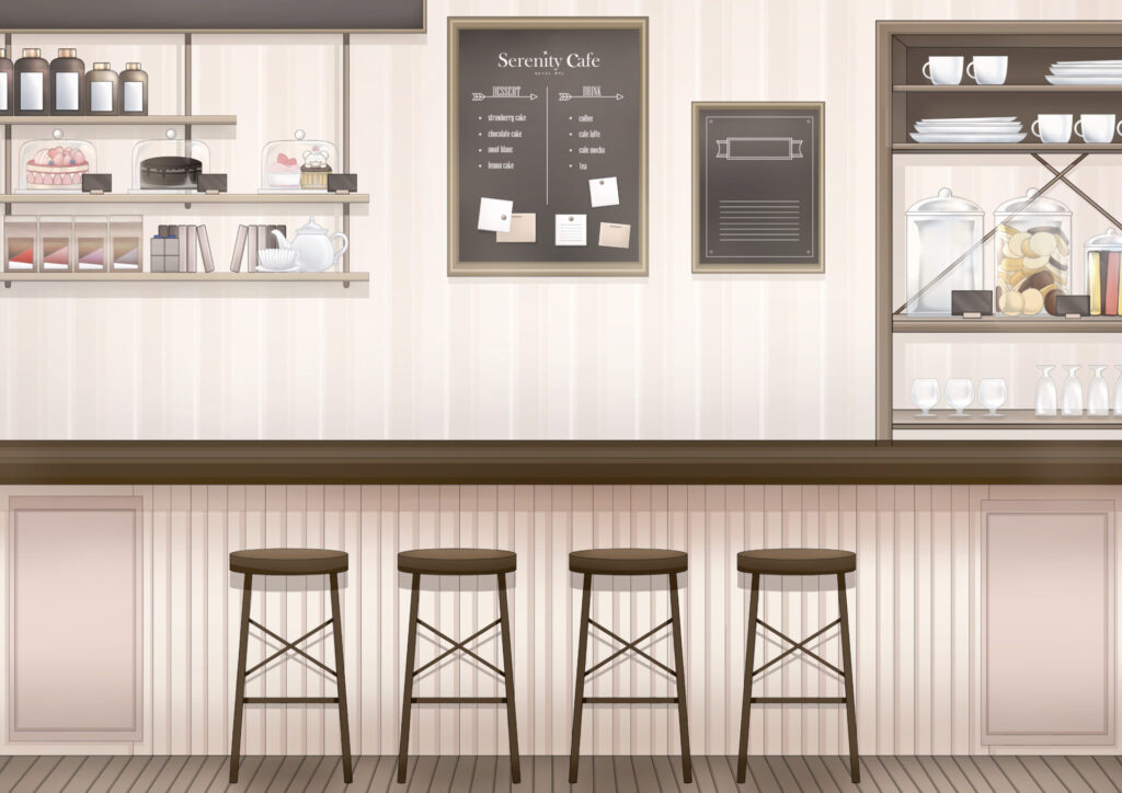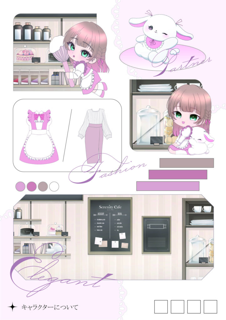 人物などのデザイン・色味からカフェの内装まで様々な部分にこだわり制作した作品です!